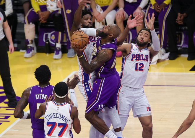 按理说艾顿属于有数据,就有防守积极性的球员,湖人也不缺进攻发起点,东契奇场均8.6次助攻+里夫斯场均5.5次助攻+詹姆斯场均7次助攻,三人每场比赛有10次左右的助攻是输送给角色球员,艾顿作为中锋,难道得不到支援?但艾顿呈现的是什么?接球黄油手;在篮下“辗转腾挪”不敢出手,刚起跳就被帽;或者挡拆后他根本就不下顺,仿佛有对抗洁癖一般,就想躲着对面的中锋。那三巨头怎么给你传球?关键艾顿离开10英尺范围,是压根没有投篮能力的。当他这种打法进攻端出现停滞时,他防守端就开始摆烂了,甚至都不伸手。